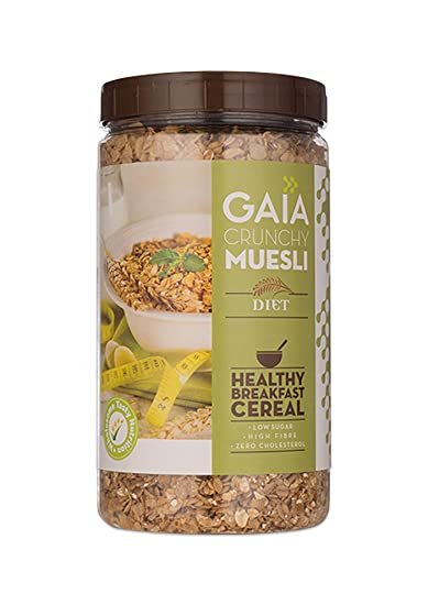 High fiber, rich in protein, and with no cholesterol,?Gaia Crunchy Muesli ? Diet?is a healthy low-calorie breakfast option for the health-conscious. Kick-start your day with a bowl of muesli that keeps you feeling full for longer and helps curb the untimely hunger pangs
